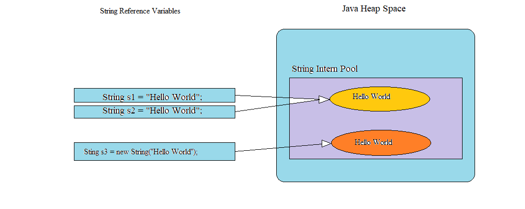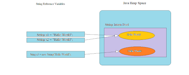 Due to the presence of a string pool in the preceding example, two different variables are pointing to the same string object from the pool, thus saving significant memory resources.